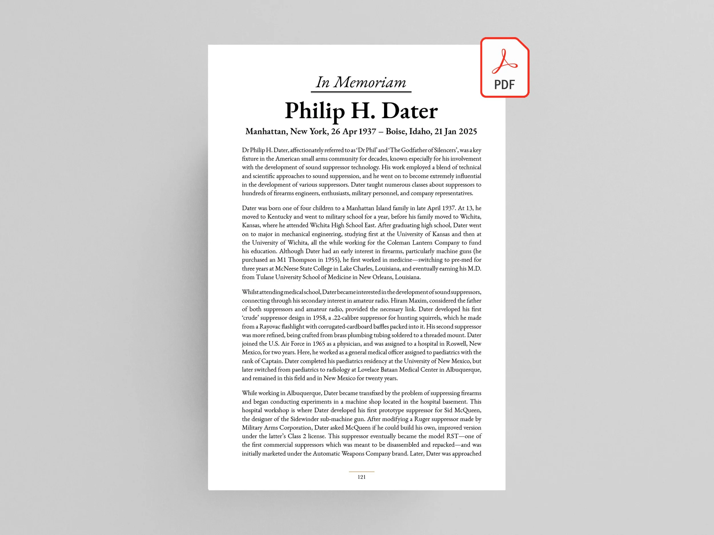‘In Memoriam: Philip H. Dater’, Armax: The Journal of Contemporary Arms, Vol. XI № 1 (2025), p.121–122, <https://doi.org/10.52357/armax76230>.